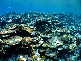 夏場にはスカシテンジクダイの群れも!!浅場にはテーブル珊瑚が育ち始めており、そちらも綺麗ですね〜