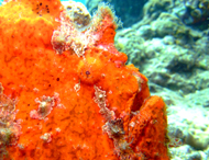 : | カエルアンコウは基本的に大人でも10p以下が殆どですが、オオモンカエルアンコウは 30pはある大型種です。その大きさは普通のカエルアンコウしか見た事が無い人には 衝撃的な大きさです。しかし、大きさの割には擬態が上手く見つけるのは難しいです。 沖縄ではちょこちょこ見れるます。 |