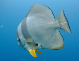 : | 腹部に黒色斑があるのはツバメウオ、無いのがナンヨウツバメウオ 吻が突出しているのがアカククリです。 |